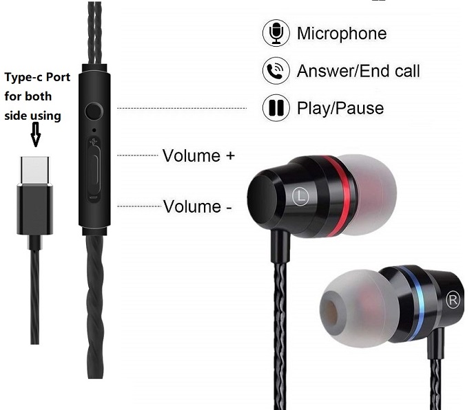 USB Type-c earphones with MIC and Volume control next song adjust